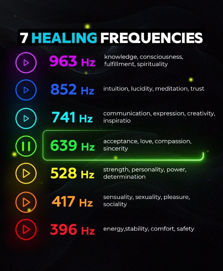 Музиката, настроена на 639 Hz е за развитие на акцептиране, любов, милост, съчувствие и откровение.