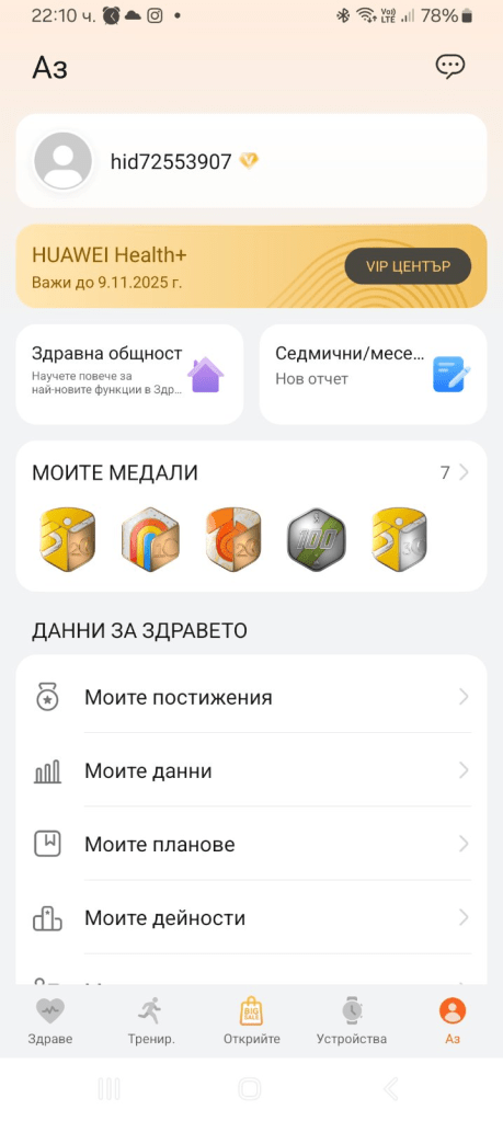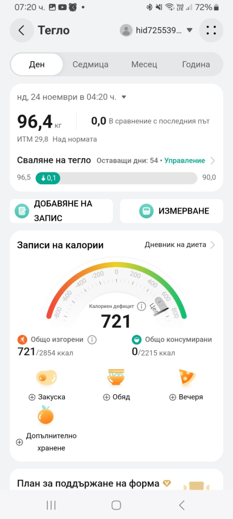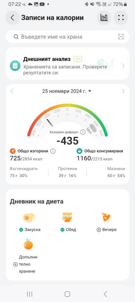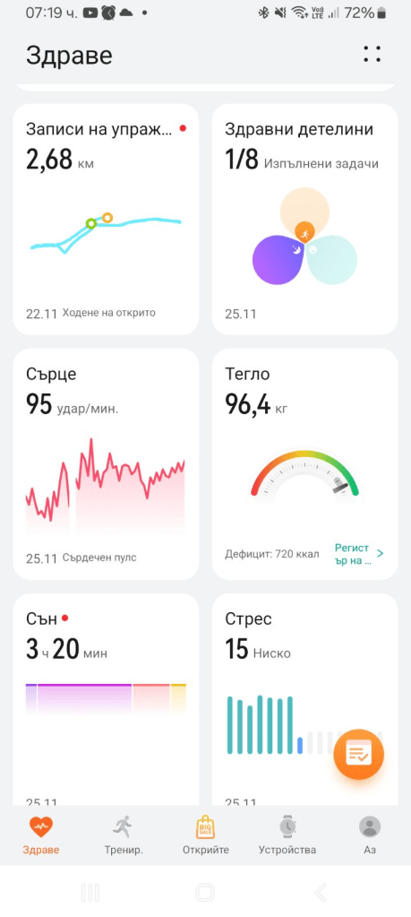 като ползвам неговото приложение Huawei Здраве където има много интересни фунции за измерването на изразходваните и приети през деня килокалории.