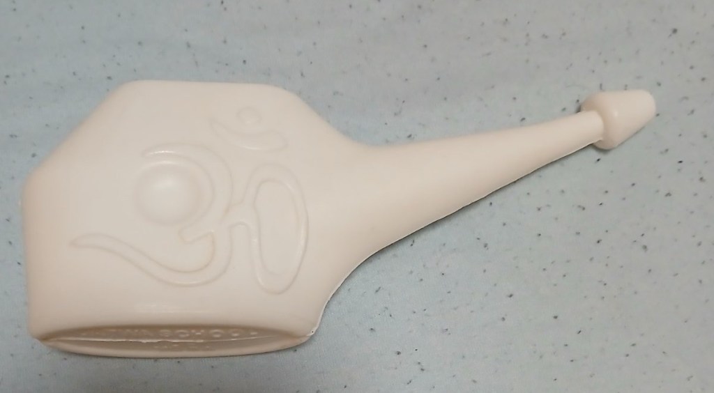 Здравейте аз ще ви разкажа как да лекувате настинки и хреми и да поддържате хигиена на носа. Слагате във 500 мл вода 1 супена лъжичка морска сол. Купувате си ето такава каничка за нос от някои индийски магазин. Сутрин я напълвате с разтвора и се навеждате над мивката накланяте главата настрани и поставяте чучура на каничката в горната ноздра. Ако сте наклонили главата си на дясно в дясната ноздра и изливате разтвора от каничката в носа си. Разтвора трябва да тече през едната ноздра и да изтича през другата в мивката. Като остане наполовина разтвора в каничката сменяте ноздрите.